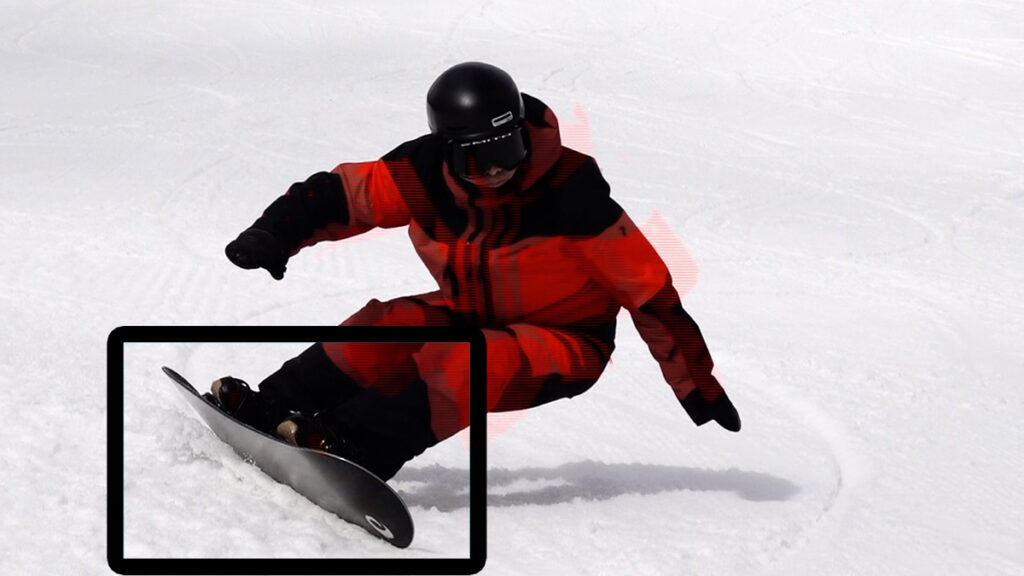 スノーボードはサイドカーブがあるため、エッジを立てて角付けするだけで曲がるように設計されています。