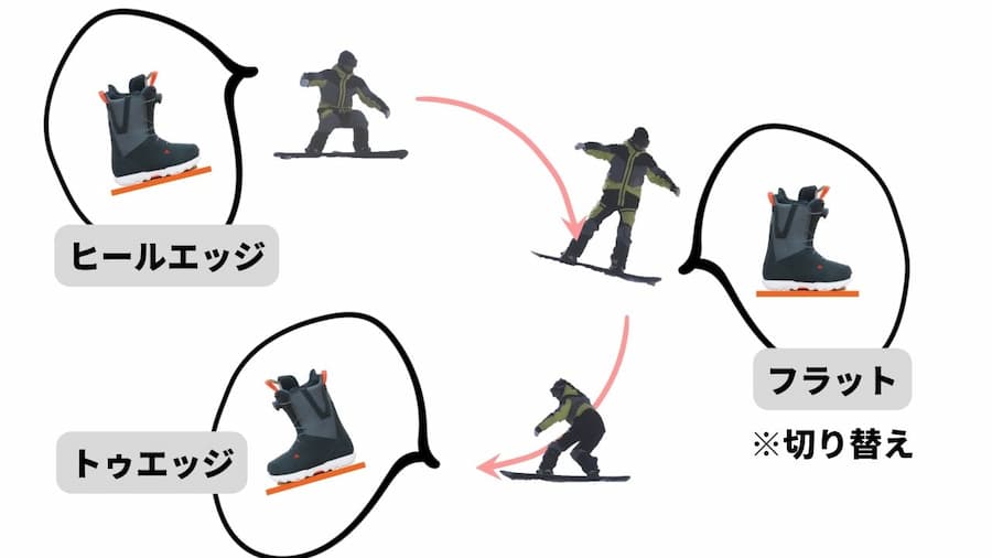 スノーボードで滑っている時、大半はトゥ側かヒール側、どちらかのエッジに乗っています。